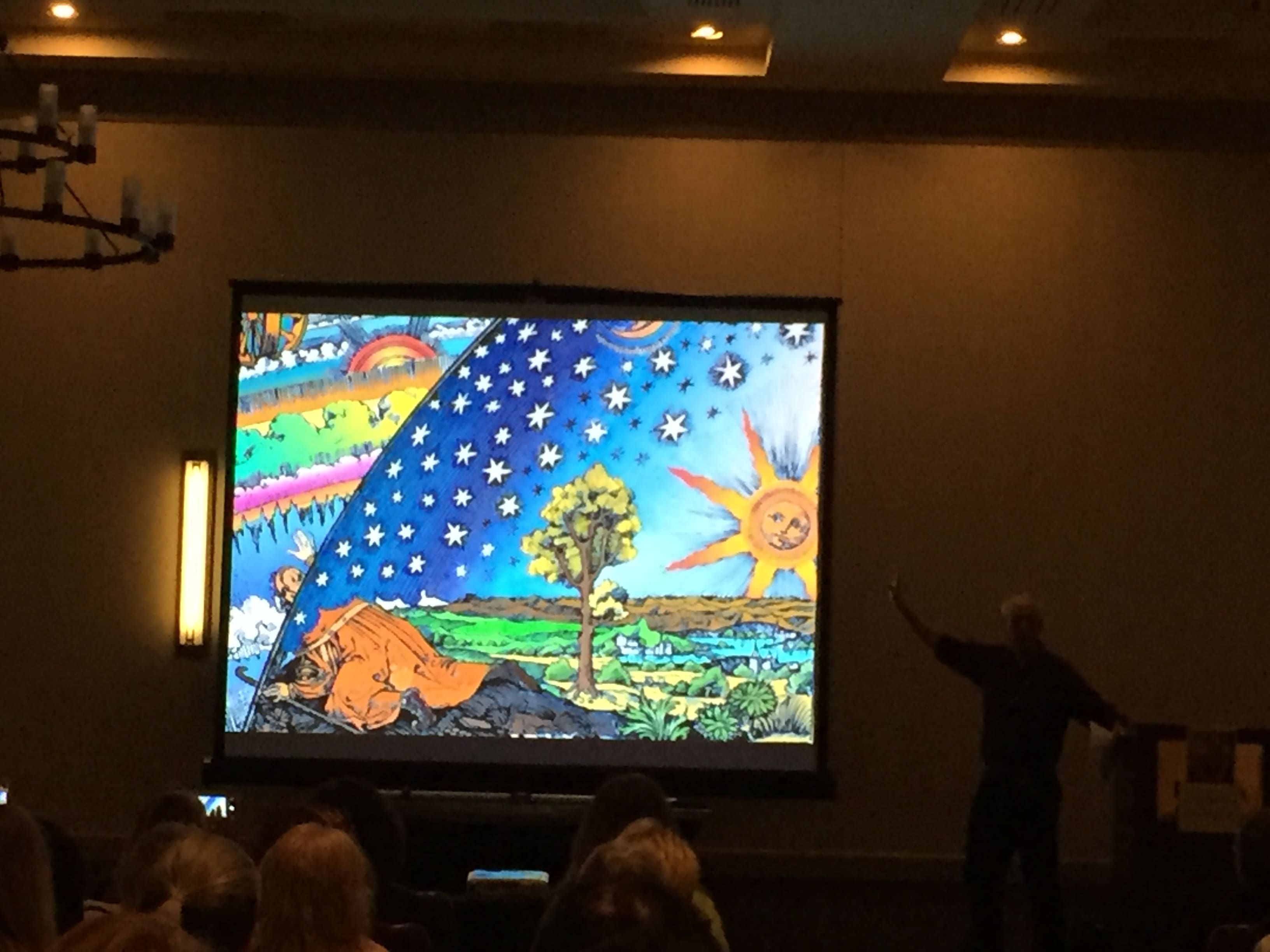 Alchemy – of course – was the main theme of the event, and we were able to learn a lot about it. You can look it up on Wikipedia, or read any one of various books about it (he referenced several, which were right up there on a side table, by the podium).